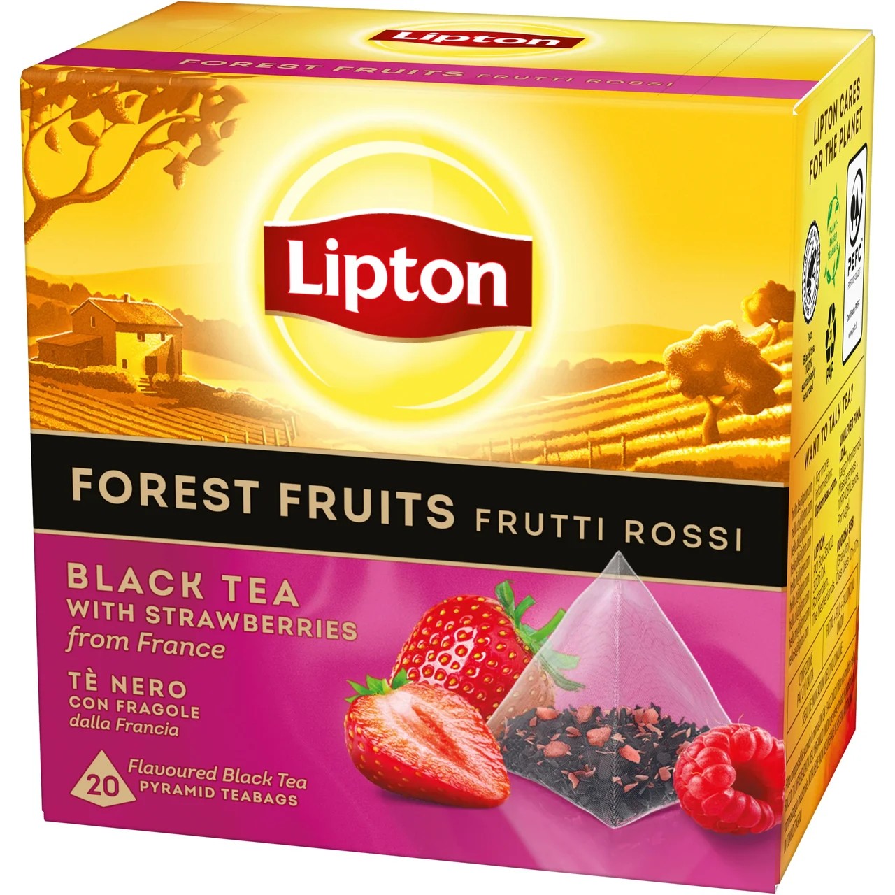 Černý čaj s lesním ovocem a jahodami z Francie (20 pyramidálních nálevových sáčků) Lipton