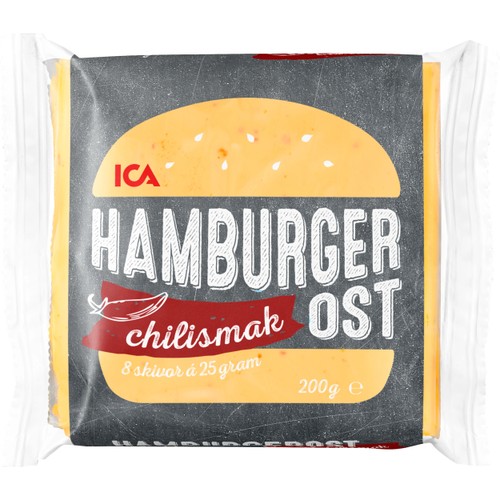 Plátkový sýr do hamburgerů pikantní s příchutí chilli (10 samostatně balených plátků) 200g ICA