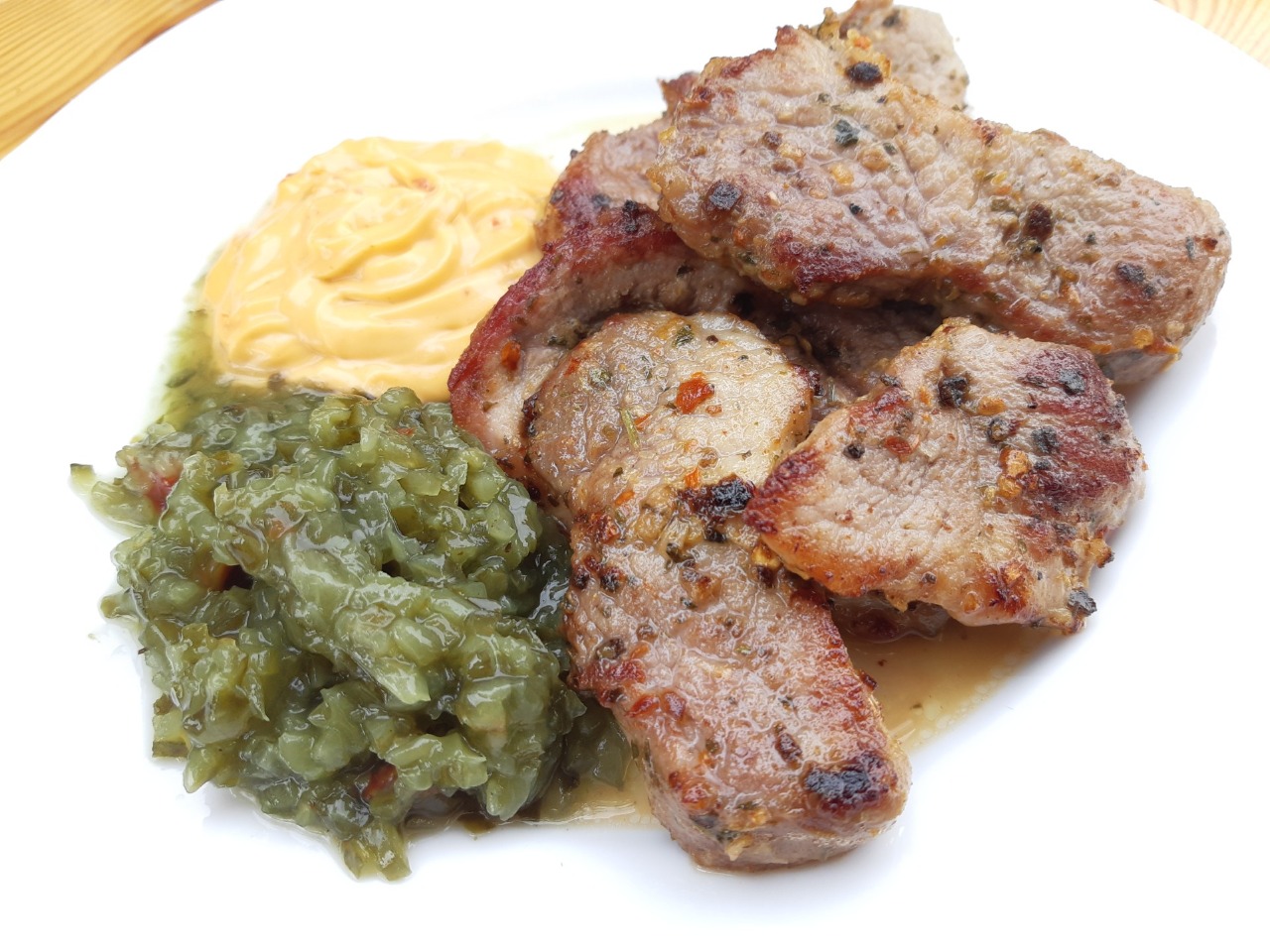 Složení: okurka, cukr, ocet, cibule, paprika, modifikovaný škrob, sůl, HOŘČIČNÁ semínka, konzervační látky (sorban draselný, benzoan sodný), stabilizátor (chlorid vápenatý), extrakt z koření (kajenský pepř), koření (včetně hřebíčku) a barvivo (E141, riboflavin). Může obsahovat stopy LEPKU.